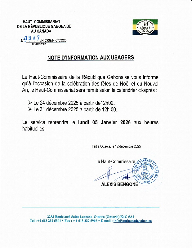 Bienvenue sur le site de l’ambassade du Gabon au Canada